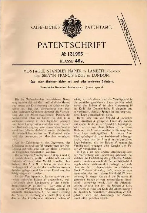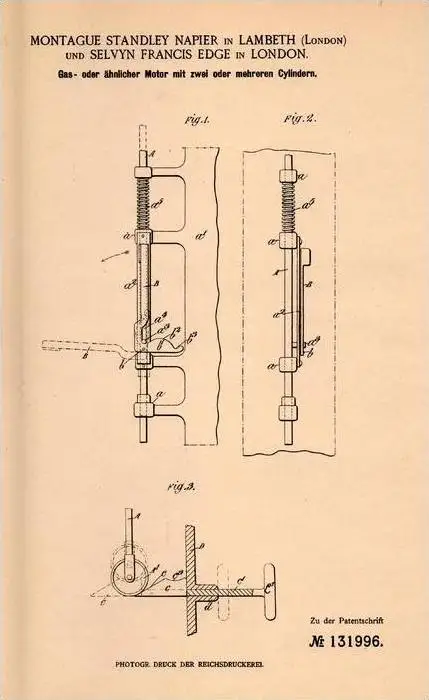 Original Patentschrift - Montague Standley Napier in Lambeth , London , 1900 , Motor mit mehreren Cylindern !!!