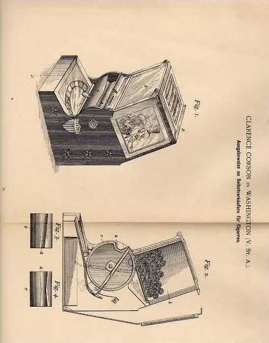 Original Patentschrift - Verkaufsapparat für Cigarren , 1900 , C. Corson in Wahington , USA , Cigarre , Zigarre !!!