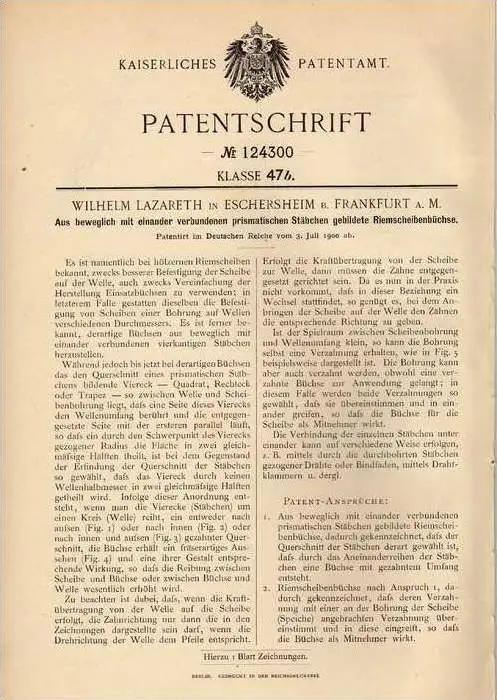 Original Patentschrift - W. Lazareth in Eschersheim b. Frankfurt a.M., 1900 , Riemenscheibenbüchse !!!