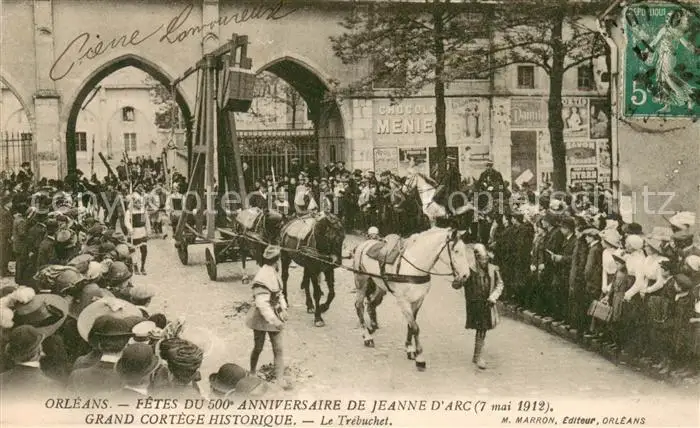 Orleans_Loiret Fetes du 500e Anniversaire de Jeanne d’Arc 1912 Grand Cortege historique Le Trebuchet Orleans_Loiret postalisch gelaufen 1912 Erhaltung siehe scans [WerneD78] WernPID7
