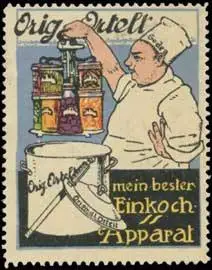 Einkoch-Apparat, einkochen, kochen, Küche, Koch, Größe/Zustand: 5x4 , guter Zustand, Original alte Reklamemarke die seinerzeit für die Werbung benutzt wurde