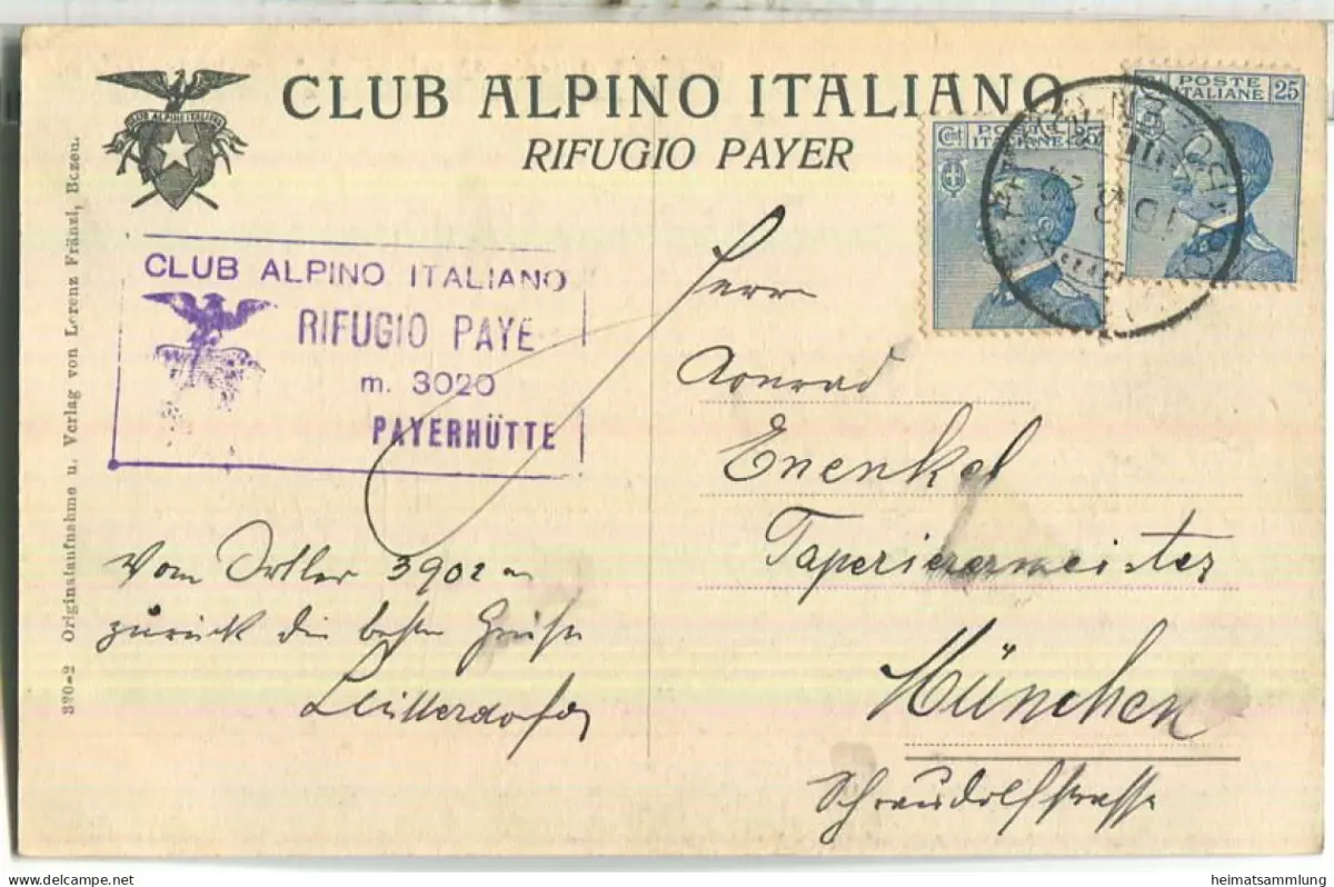 Ortler - Payerhütte - Club Alpino Italiano Rifugio Payer - Verlag Lorenz Fränzl Bozen (E88766) gel. 1922