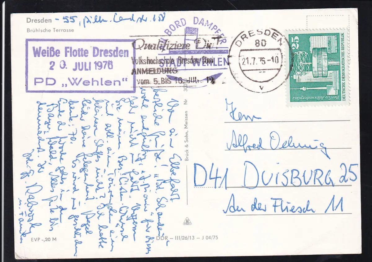 Ost. DRESDEN 21.7.75 + 2 Bordstempel Dampfer Stadt Wehlen auf CAK (Dampfer)