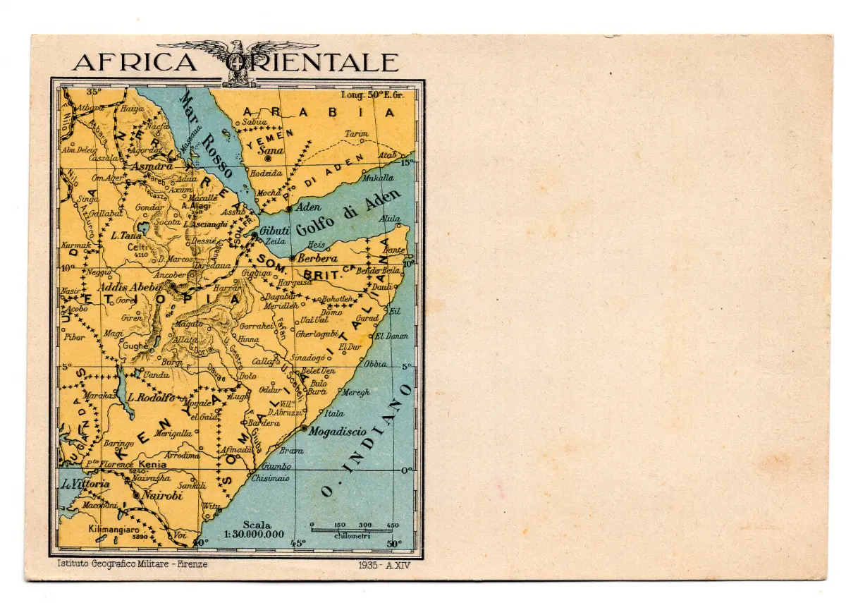 Die Postkarte - 1935 Ostafrika Postkarte für die Streitkräfte neue Landkarte in sehr gutem Erhaltungszustand Katalog EuroN.C. Cod.2293/WEB