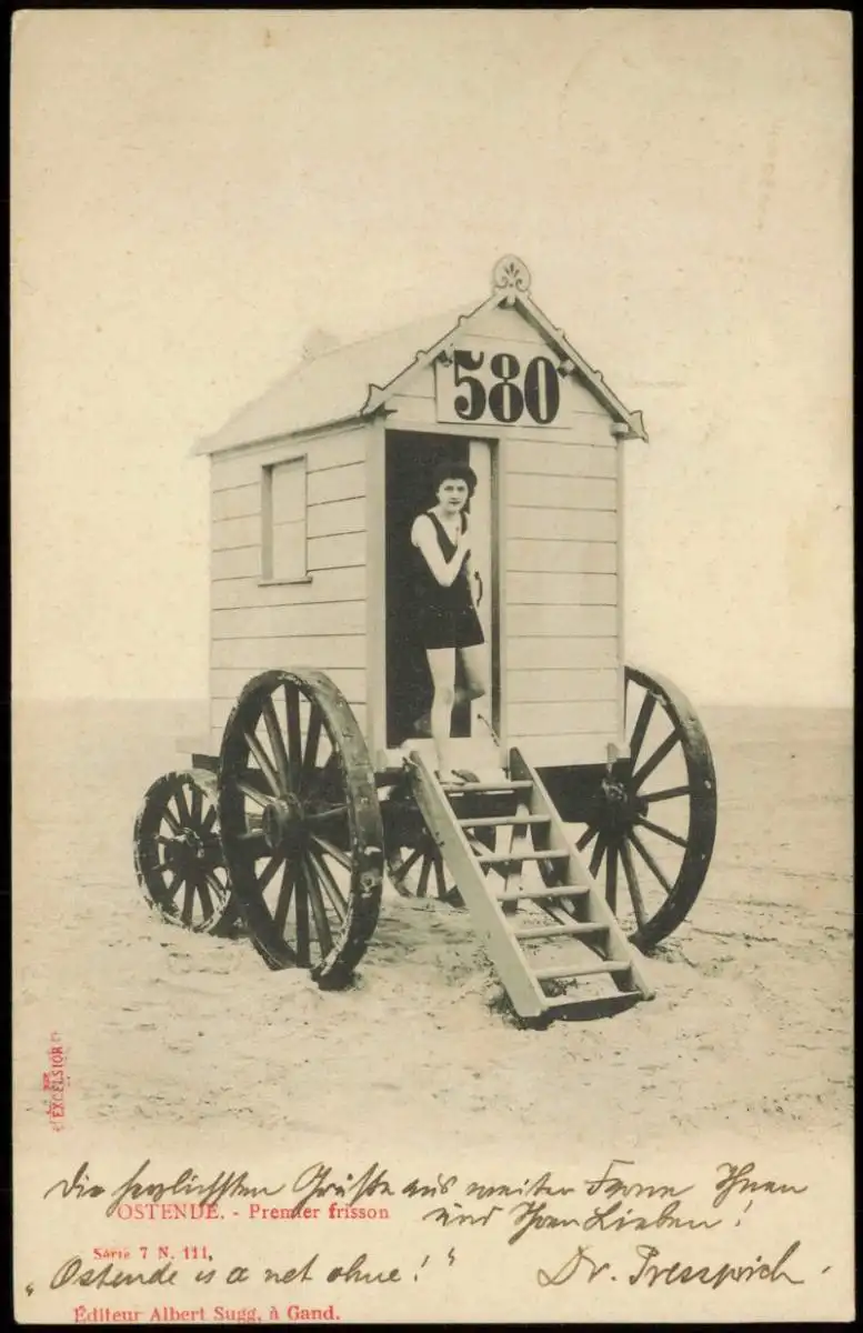 Ostende Oostende Prenner frisson - Umkleidewagen Strand Frau 1905