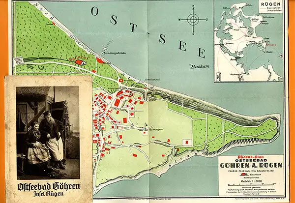 Ostseebad Göhren auf Rügen Buchausgabe für den Reise und Fremdenverkehr um 1926 mit einem Faltpanorama und beiliegenden Pharusplan