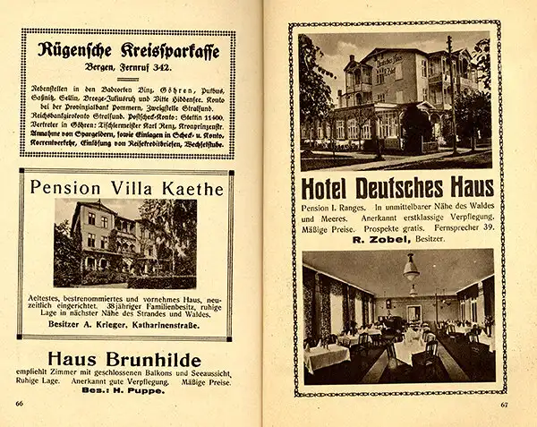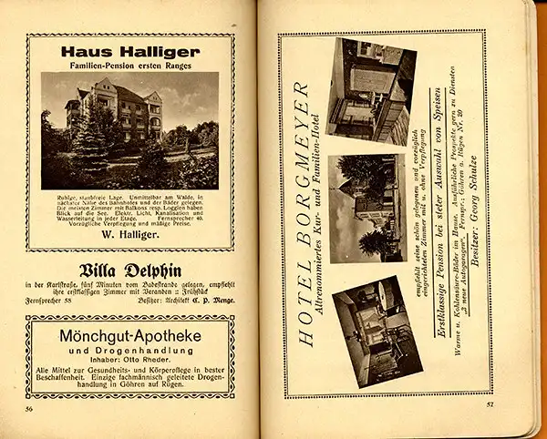 mit GESAMT 78 Seiten Seiten photographischen und druckgraphischen Abbildungen einem Ortsplan Geschichte des Ortes und Entwicklung des Seebades Göhren als kur und Badeort Leben Arbeit und Brauchtum seiner Bewohner Informationen zum Aufenthalt Bade Saison und Strandleben Wohnungen und Kurtaxe Reise und Verkehrsverbindungen Zugfahrplan nach Rügen außerdem Inserate mit Werbung von Hotel Gaststätten und Pensionsbetrieben darunter viele Bildanzeigen