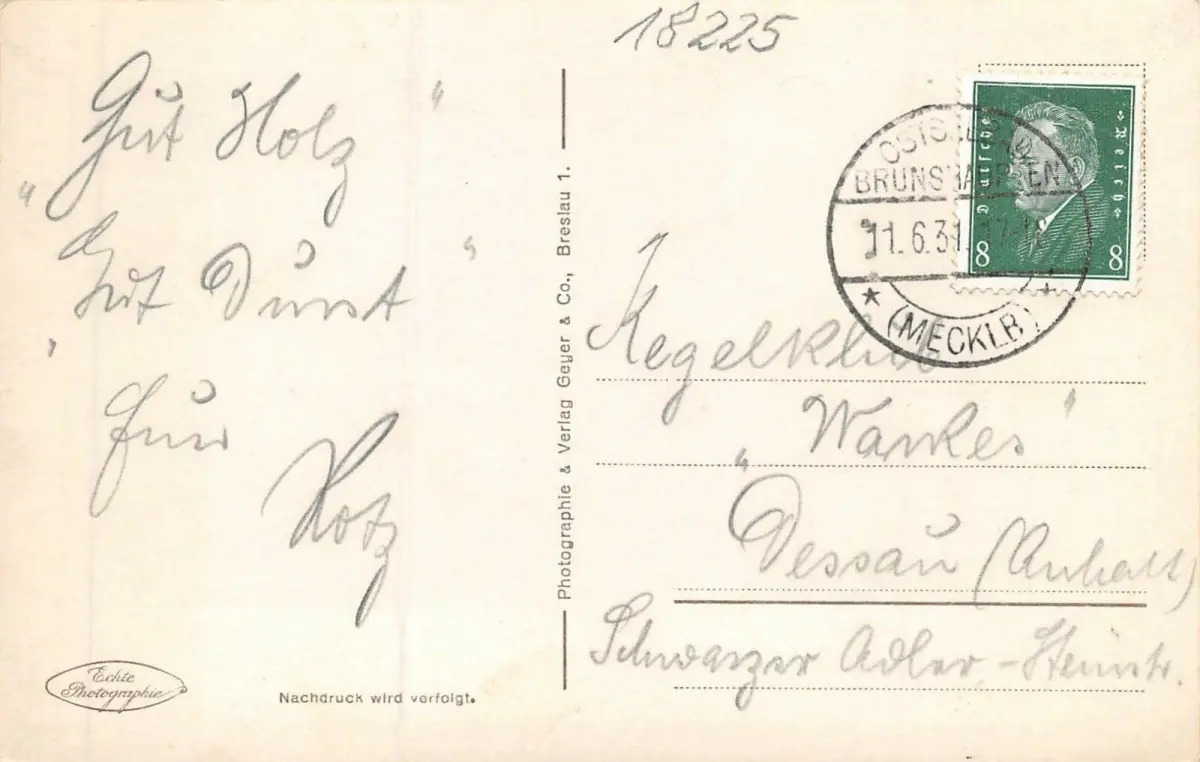 Rückseite: gelaufen 1931 von Ostseebad Brunshauptem (Mecklb.)