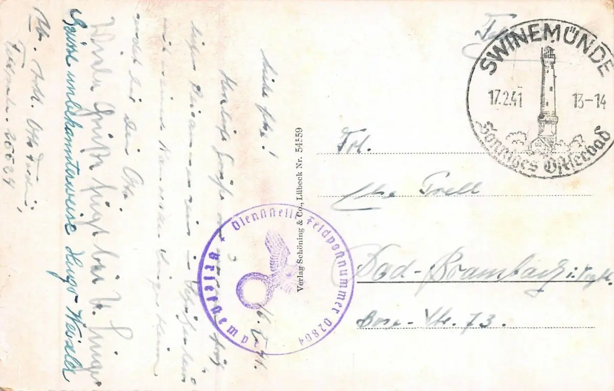 Rückseite: gelaufen 1941 von Swinemünde