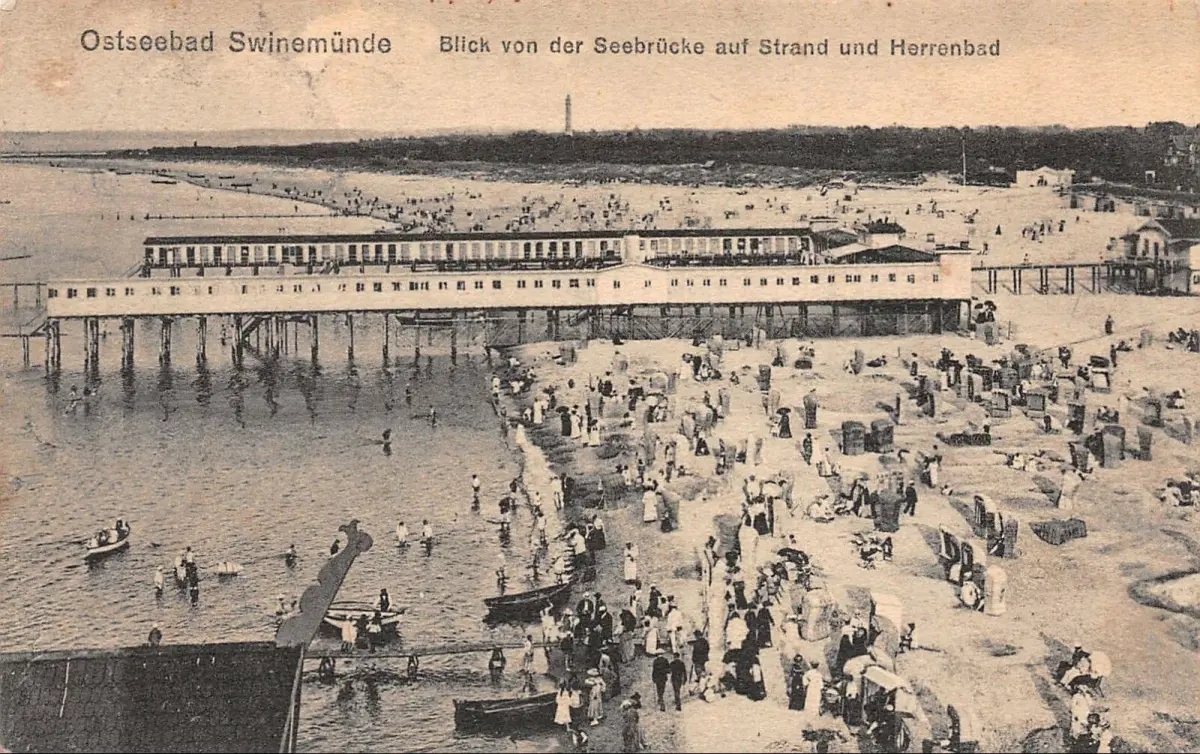 Ostseebad Swinemünde Blick von der Seebrücke auf Strand Postkarte AK 1912