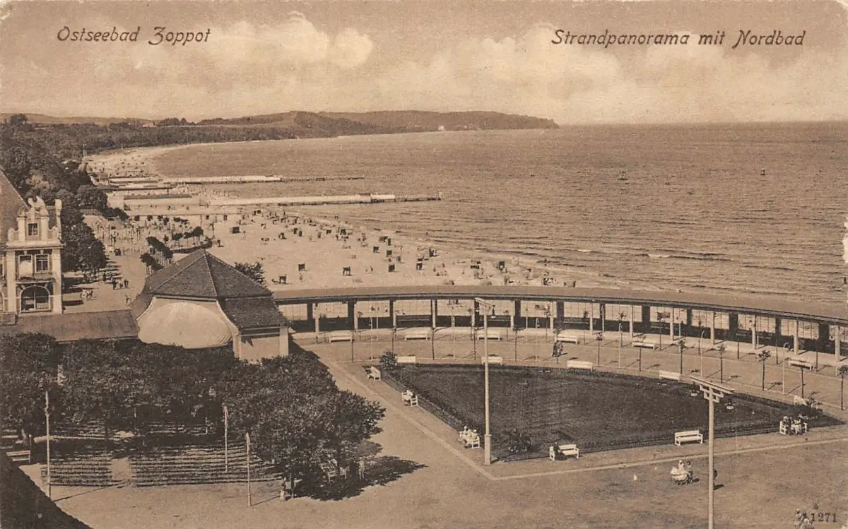 Ostseebad Zoppot (Sopot) Strandpanorama mit Nordbad AK