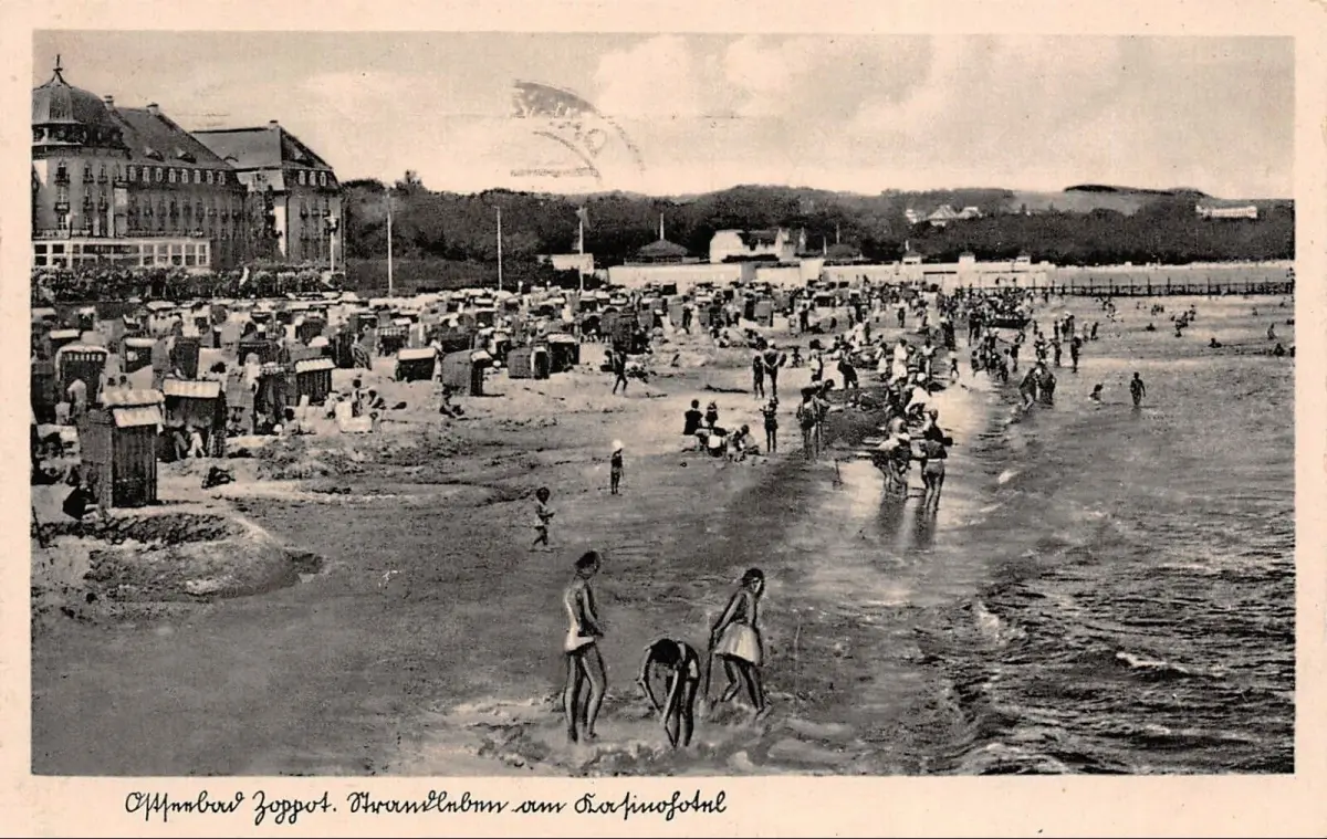 Ostseebad Zoppot Strandleben Postkarte AK 1942