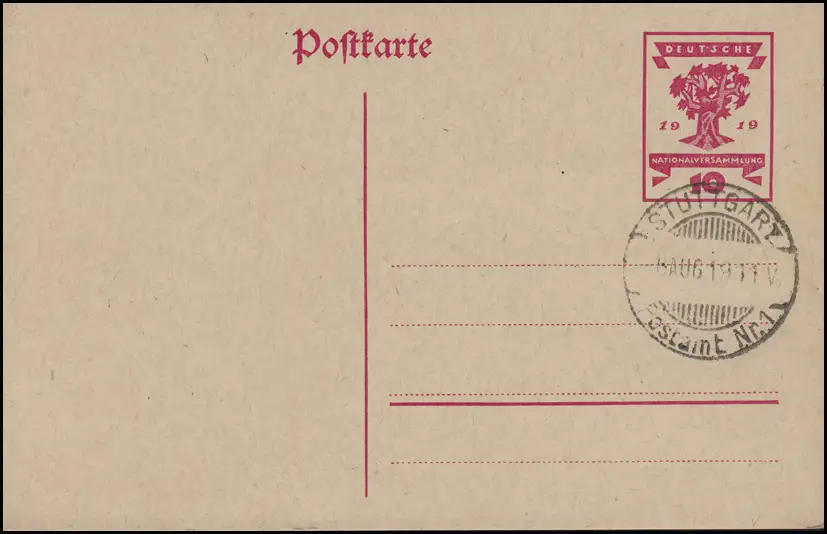 P 115 Nationalversammlung mit Blanko-Stempel STUTTGART POSTAMT Nr. 1 - 6.8.1911