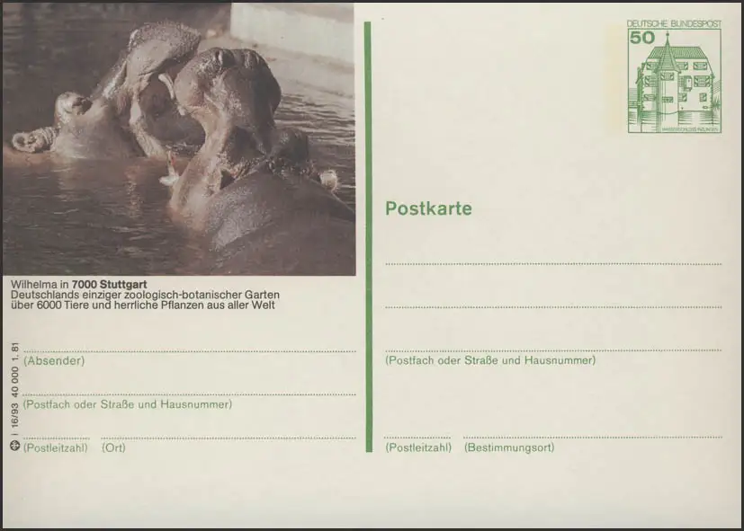 P134-i16/093 - 7000 Stuttgart, Wilhelma Flußpferde **