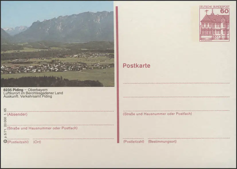 P138-p5/071 8235 Piding, Ortsansicht mit Berge **