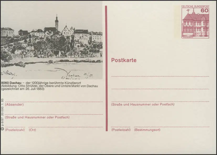 P138-p6/087 8060 Dachau, Zeichnung: Stadtansicht **