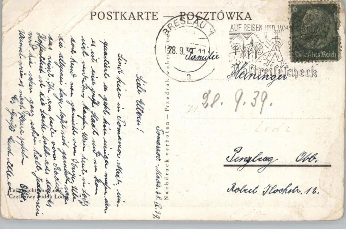 PL 90001 LODZ, Teilansicht, 1939, AK eines Soldaten 4 Wochen nach Kriegsbeginn, Druckstellen