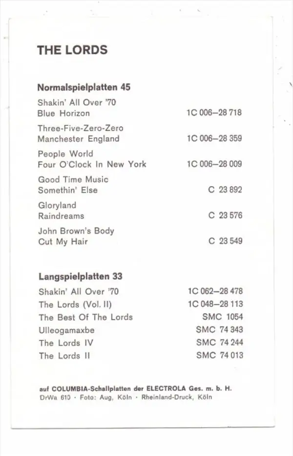POP - MUSIK, "THE LORDS" mit allen Unterschriften