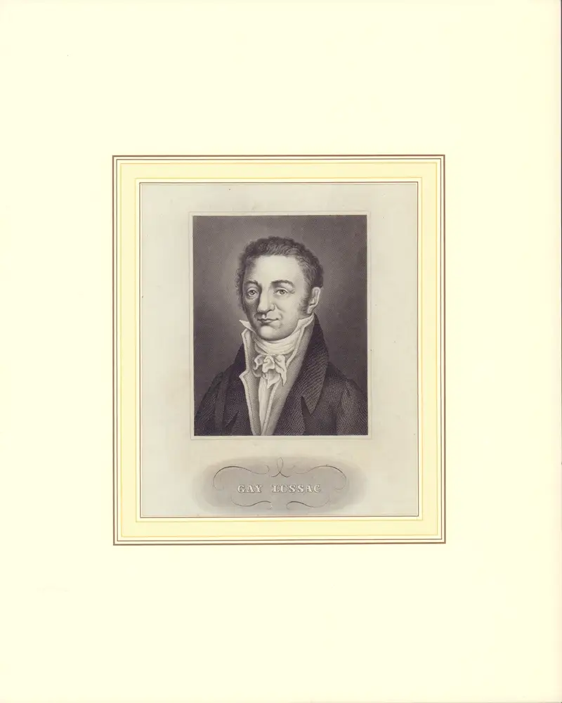 Joseph Louis Gay-Lussac (1778 Saint-Léonard-de-Noblat - 1850 Paris, französischer Chemiker u. Physiker), entdeckte die gleichmäßige Wärmeausdehnung von Gasen, entwickelte die erste sichere Methode zur Durchführung von Elementar-Analysen für organische Stoffe u.führte erstmals eine Titrimetrie (Maßanalyse) aus. - Ganz schwach stockfleckig