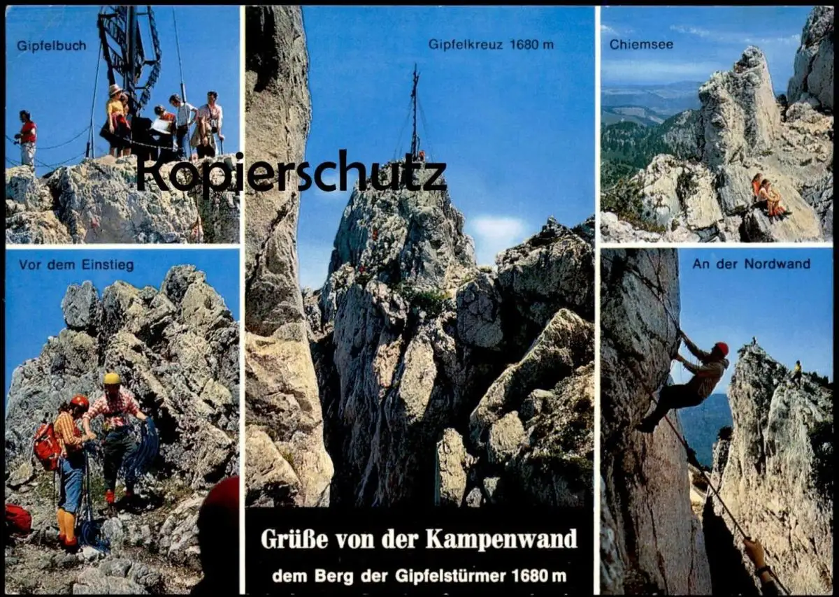 ÄLTERE POSTKARTE GRÜSSE VON DER KAMPENWAND DEM BERG DER GIPFELSTÜRMER 1680 METER VOR DEM EINSTIEG GIPFELBUCH GIPFELKREUZ AN DER NORDWAND CHIEMSEE