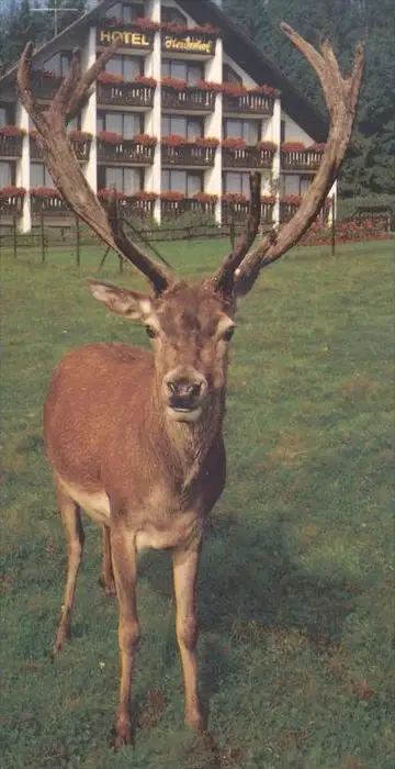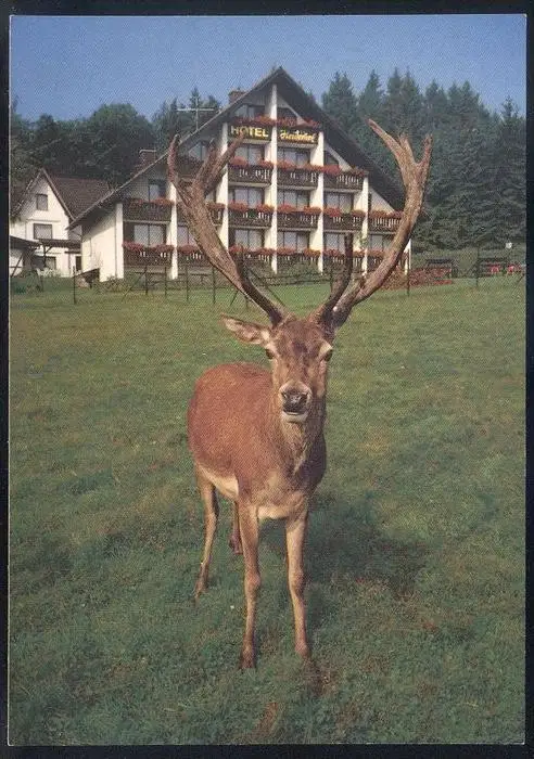 POSTKARTE HORHAUSEN-OBERSTEINEBACH WALDHOTEL HEIDERHOF HIRSCH FLAMMERSFELD roe fallow deer daim chevreuil cerf postcard
