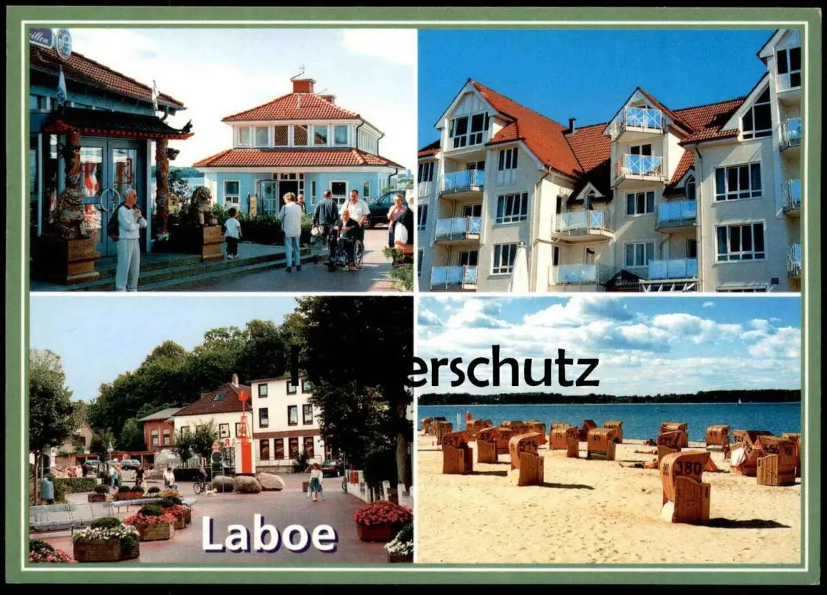 POSTKARTE LABOE KIELER FÖRDE STRANDKÖRBE PERSONEN TREPPEN ROLLSTUHL IMBISSVerlag: Birgit Schneider, Timmendorfer Strand