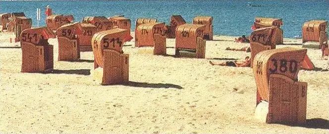 POSTKARTE LABOE KIELER FÖRDE STRANDKÖRBE IMBISS TREPPEN ROLLSTUHL wheelchair chaise roulante cpa postcard Ansichtskarte