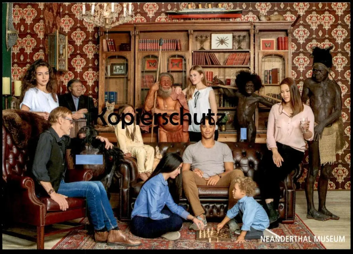 POSTKARTE NEANDERTHAL MUSEUM MENSCHEN SPIELEN SCHACH