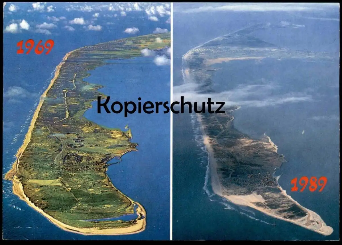 POSTKARTE SYLT VERGLEICH DER INSEL 1969 & 1989 PROBLEM EROSION SÜDSPITZE Nordsee North Sea Mer du nord cpa postcard AK