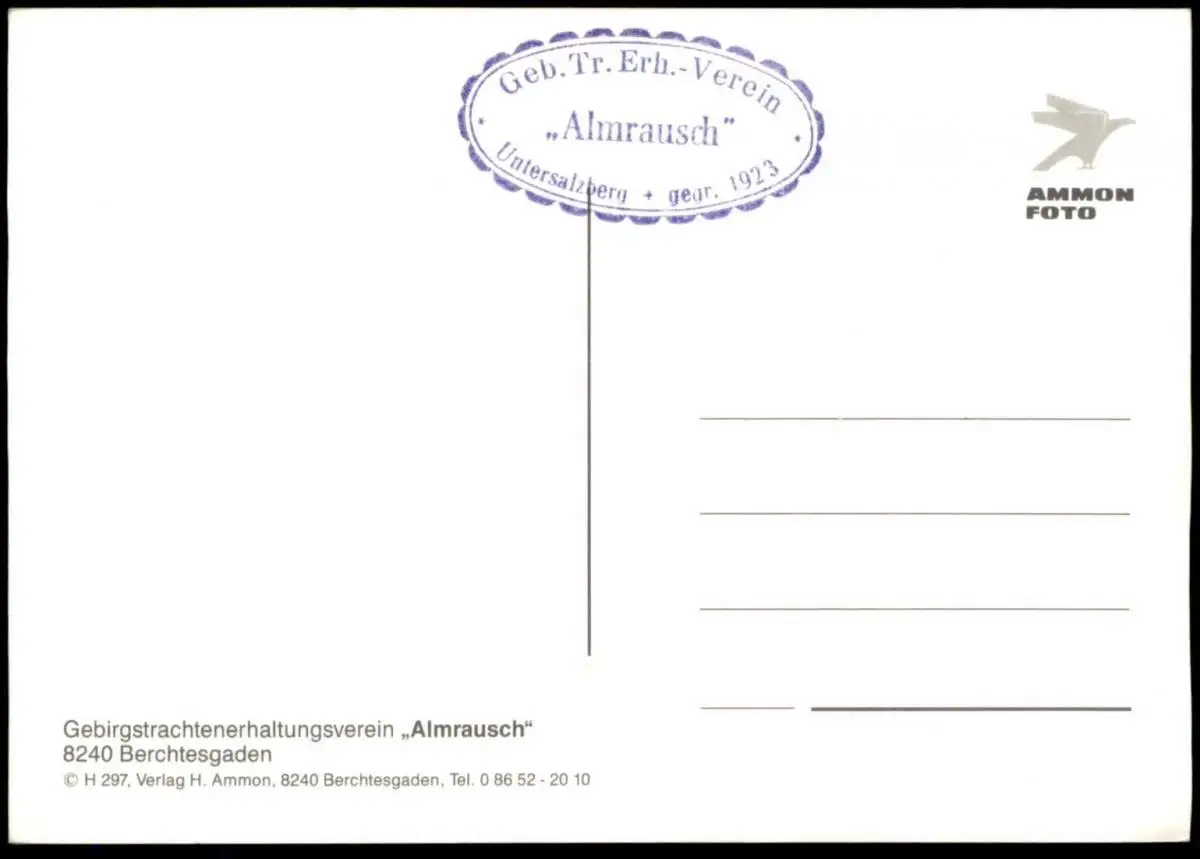 ÄLTERE POSTKARTE GEBIRGS TRACHTEN ERHALTUNGS VEREIN ALMRAUSCH GEBIRGSTRACHTENERHALTUNGSVEREIN UNTERSALZBERG GEGRÜNDET 1923Verlag: H. Ammon, Berchtesgaden