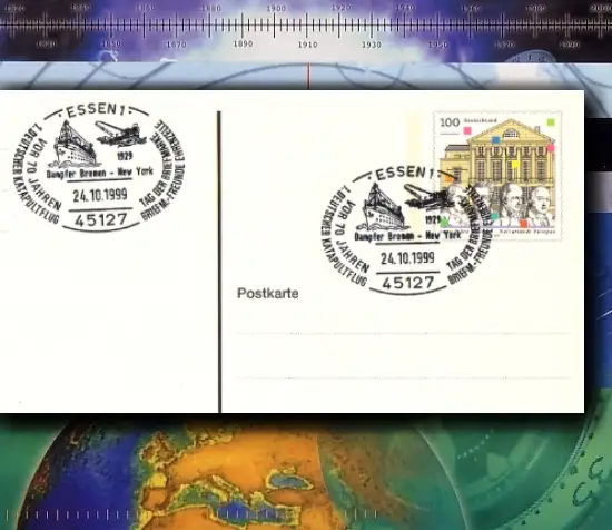 fünf Ganzsachen mit verschiedenen Motiven zur Jahrtausendwende komplett, alle mit passendem Sonderstempel Essen