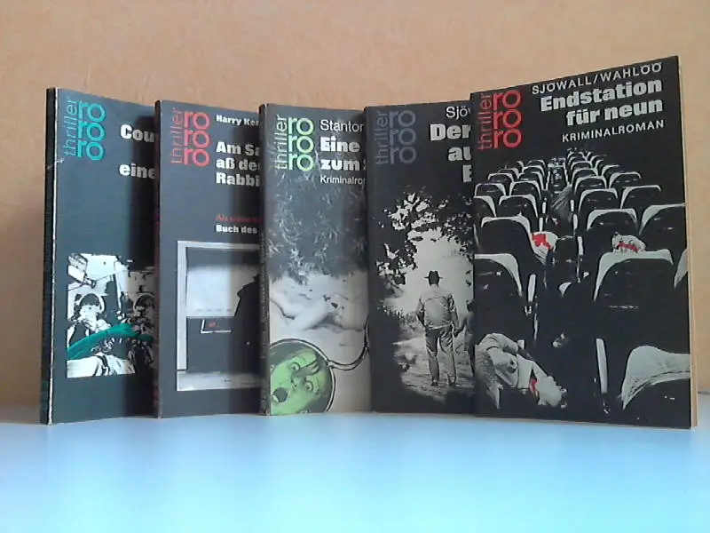 die Bücher sind ein Dachbodenfund, gebräunt, fleckig, Bestoßungen an den Kanten, Widmungseinträge, COUNTDOWN FÜR EINEN KILLER: Countdown auf Cape Kennedy. Sekunden vor dem Start wird entdeckt, daß eine Höllenmaschine in der Raumkapsel sein muß - aber die überperfektionierte Routine kann nicht mehr gestoppt werden.... AM SAMSTAG ASS DER RABBI NICHTS: Am höchsten jüdischen Feiertag erleidet ein Mann einen tödlichen Unfall. Am Samstag darauf wächst der Verdacht, dass es Selbstmord war, und der Rabbi bekommt Ärger mit einem strenggläubigen alten Mann. ... EINE INSEL ZUM STERBEN: Die Tote muß nach Ansicht der Polizei von einem Boot über Bord geworfen und an den Strand gespült worden sein, wo Sie der Hotelbesitzer zufällig gefunden hat. Ob das - angesichts der Vergangenheit des Mannes - wirklich so zufällig war, bezweifelt zumindest die Reporterin. .... ENDSTATION FÜR NEUN: Endstation der Buslinie 47. Aber der Bus mmt jn^ an. hundert Meter vorher gegen einen Zaun geprallt. Der Fahrer liegt erschossen über dem Lenkrad. ... DER MANN AUF DEM BALKON: Der gute Onkel hat bereits zwei kleine Mädchen in die Parkanlagen gelockt und umgebracht. Die gesamte Polizei von Stockholm ist auf den Beinen, um den Unbekannten zu suchen, von dem sie nur eines weiß: Er ist ein Lustmörder ... (von den Einbandrücken) Beschreibung vom Antiquariat Ardelt 4h2b ISBN-Nummer: 349942214X Antiquariat Ardelt