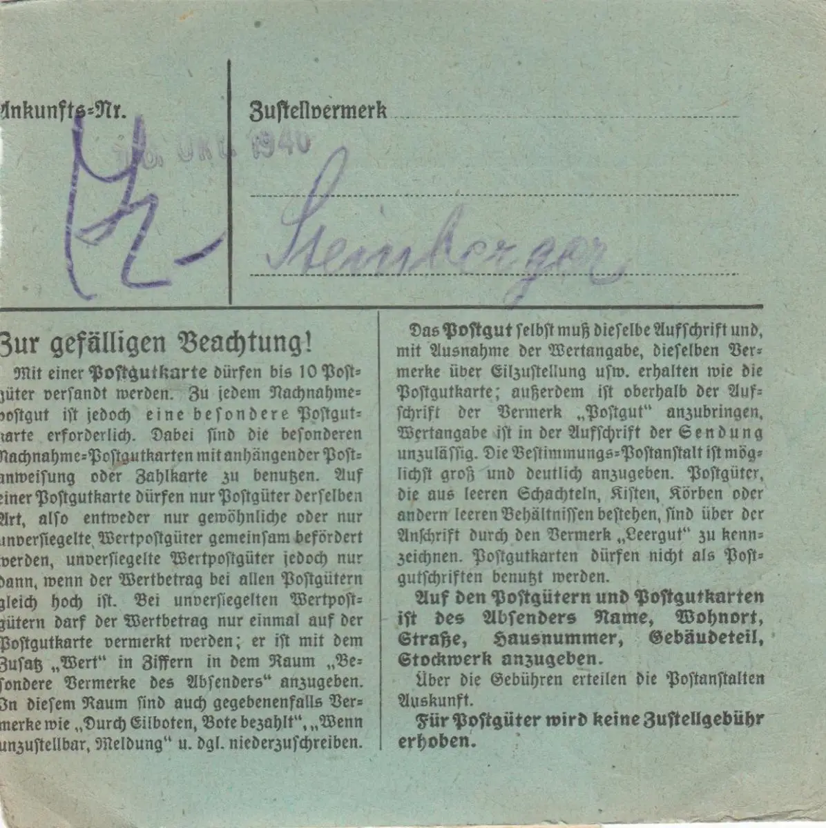 Paketkarte 1946: Dachau nach Bad Aibling, besonderes Formular