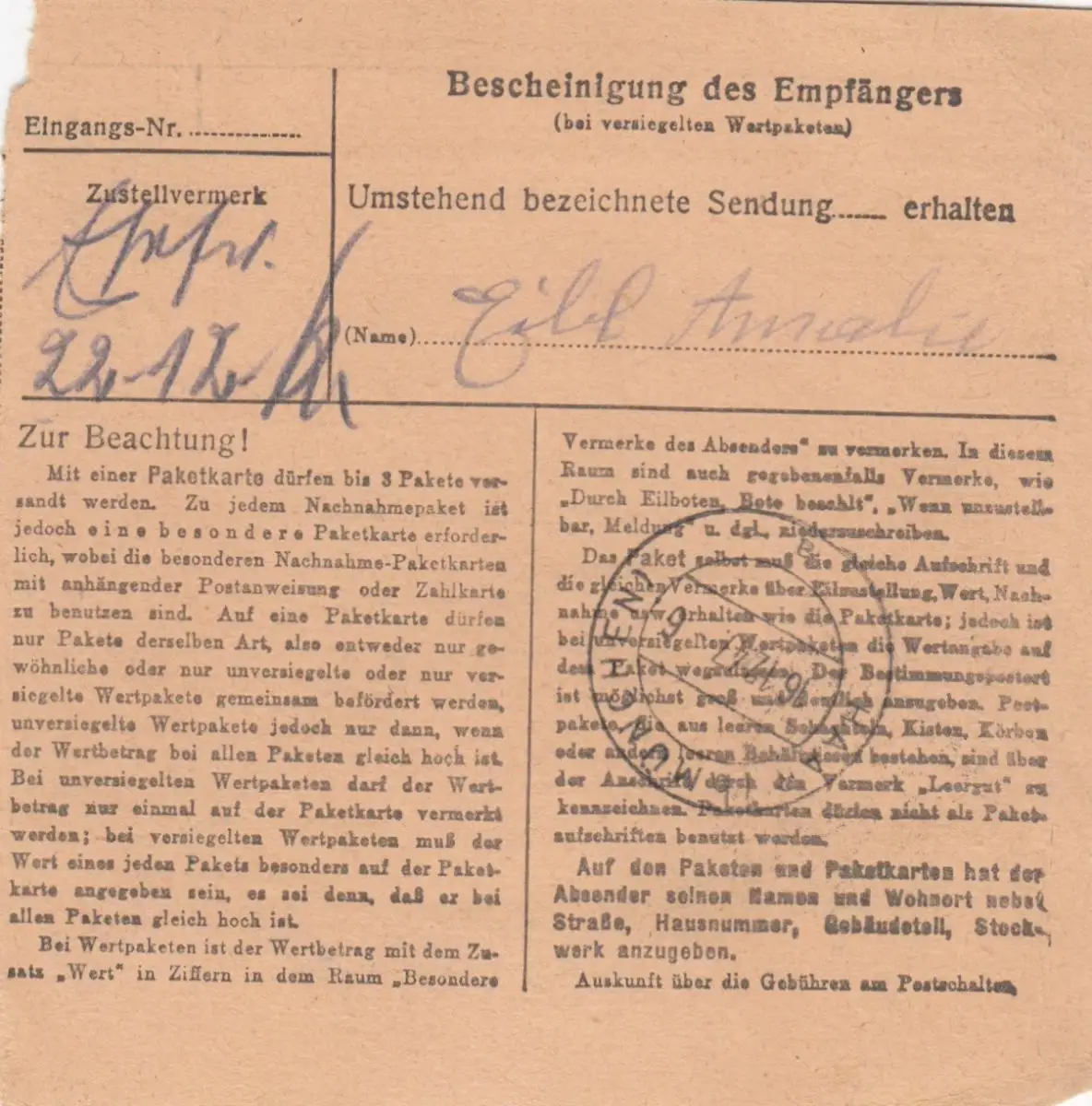Paketkarte 1947: Melperts Wüstensachsen nach Haar