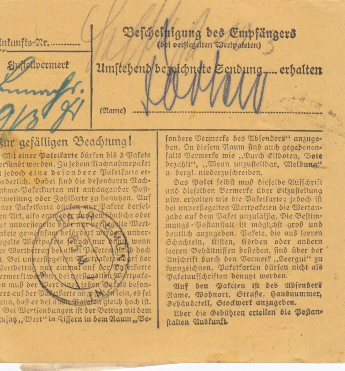 Paketkarte 1948: Berlin-Lichterfelde nach Post München-Haar