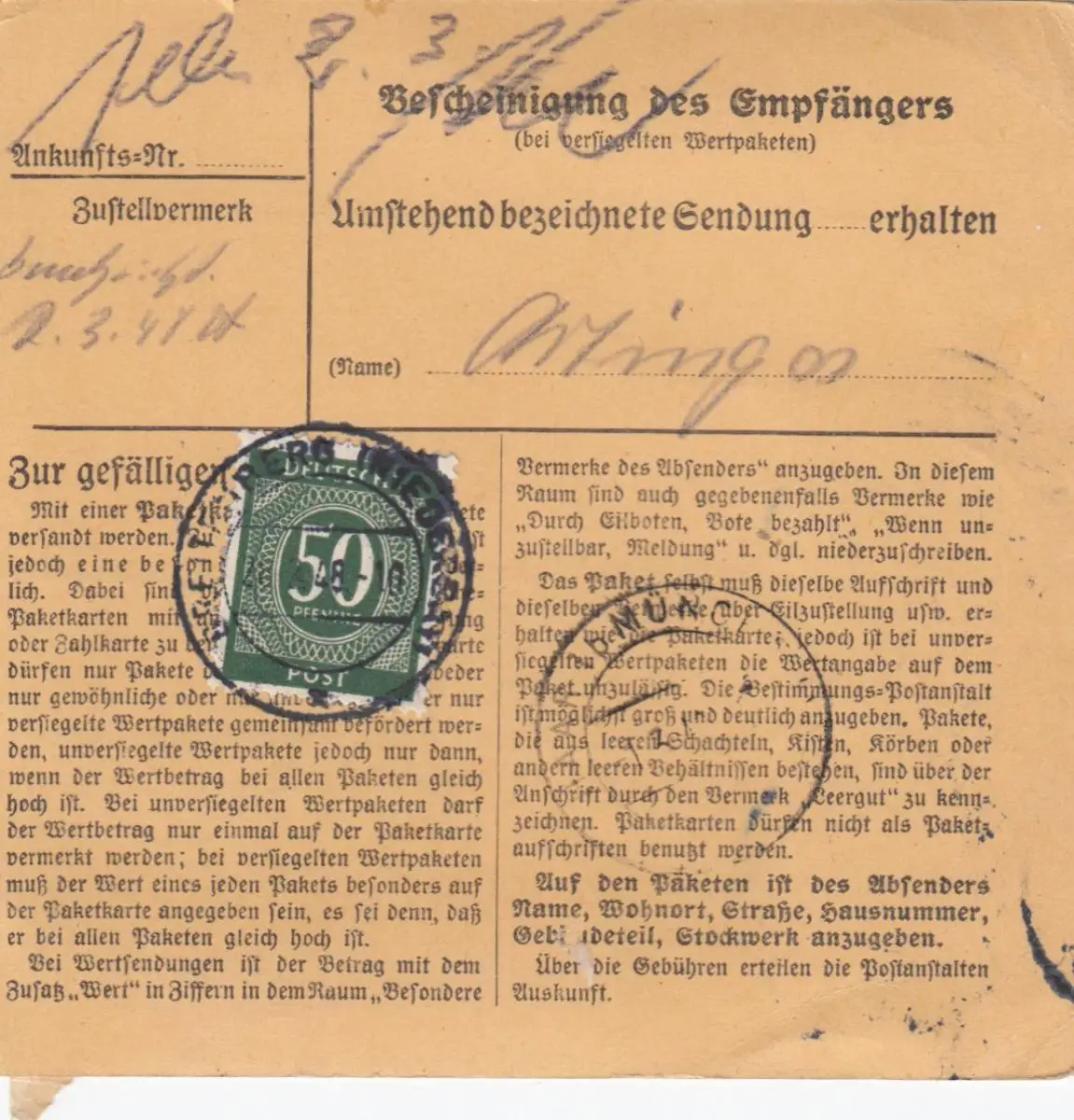 Paketkarte 1948: Breitenberg nach Haar, Wertkarte 150 RM