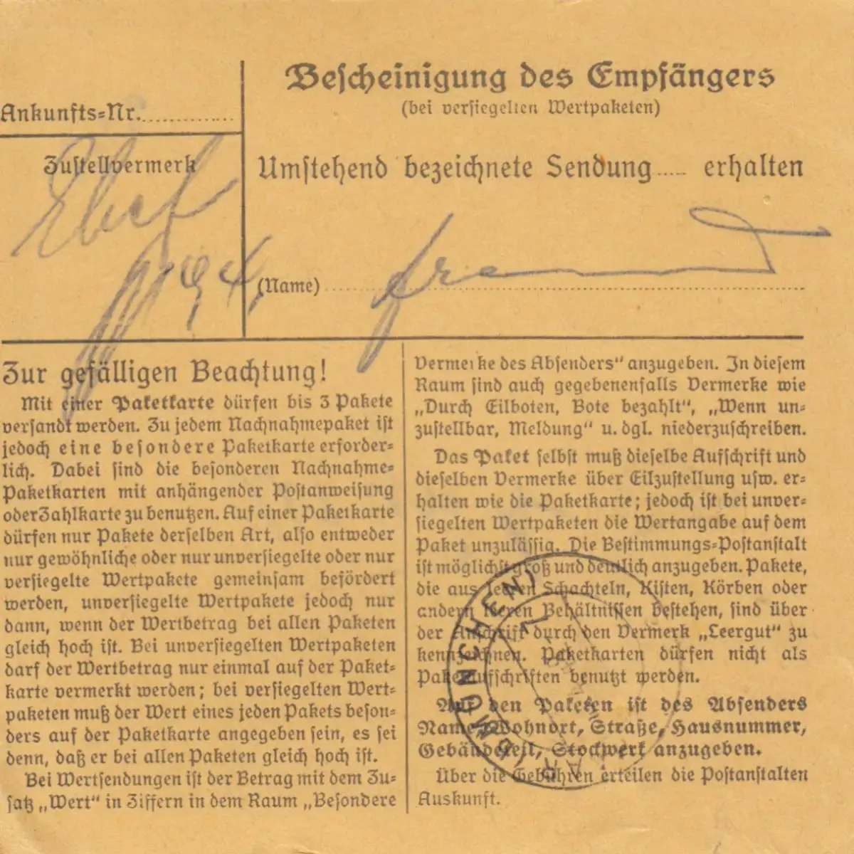 Paketkarte 1948: Moosburg nach Damenkleider in Haar, Leergut