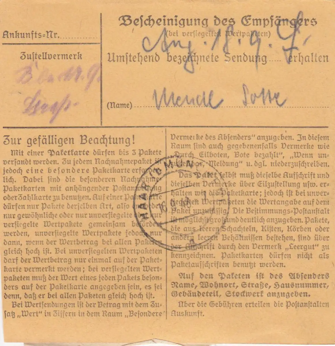 Paketkarte 1948: München nach Haar, Selbstbucherkarte mit Wert - Zimmemann&Co