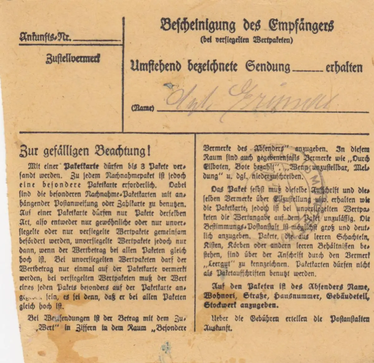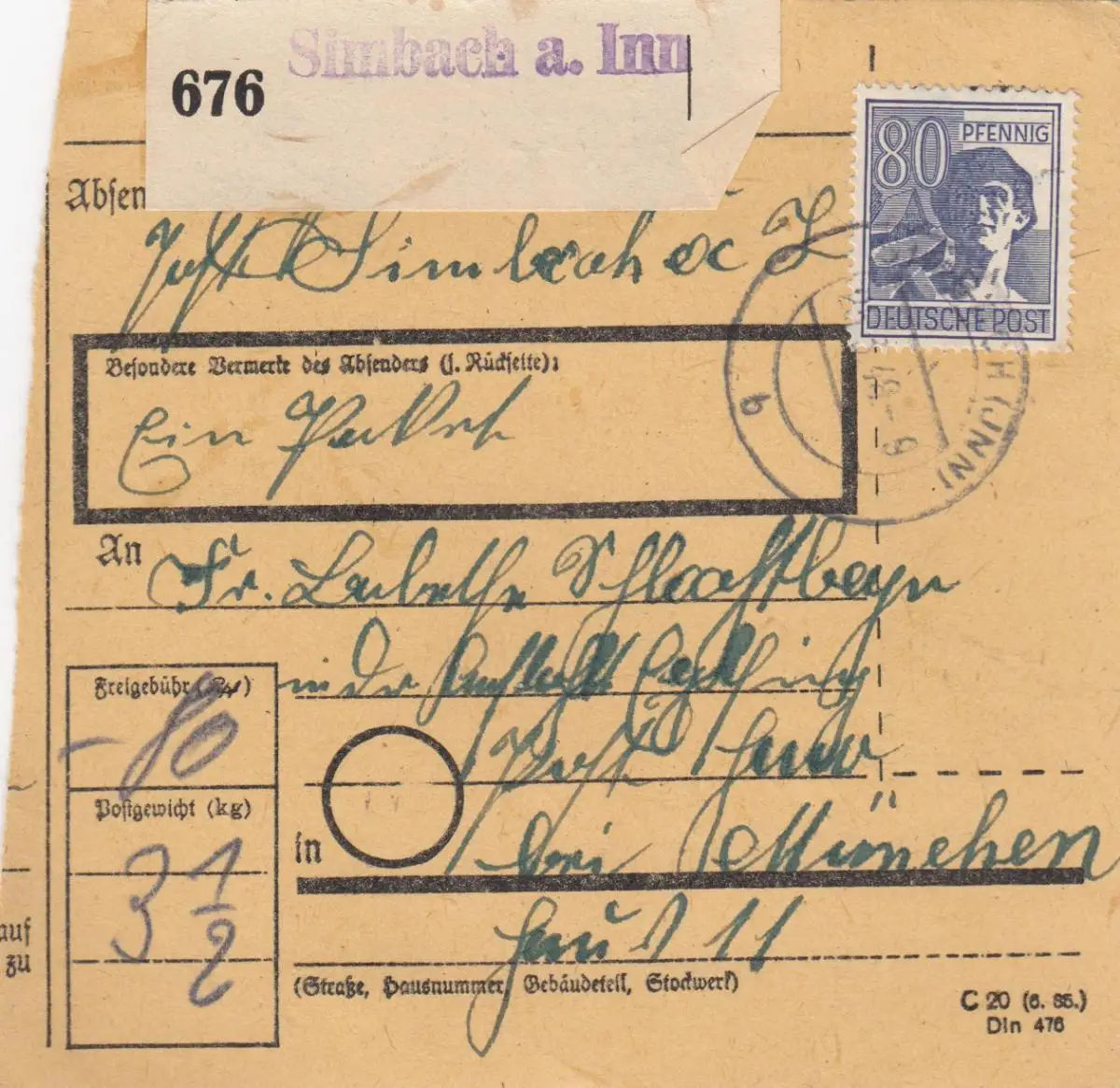 Paketkarte 1948: Simbach a. Inn nach Post Haar
