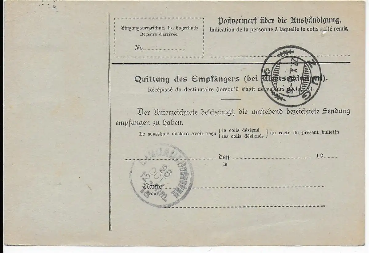 Paketkarte Buchhandlung Leipzig 1916 nach Zug über Lindau, Zollamtl. geprüft