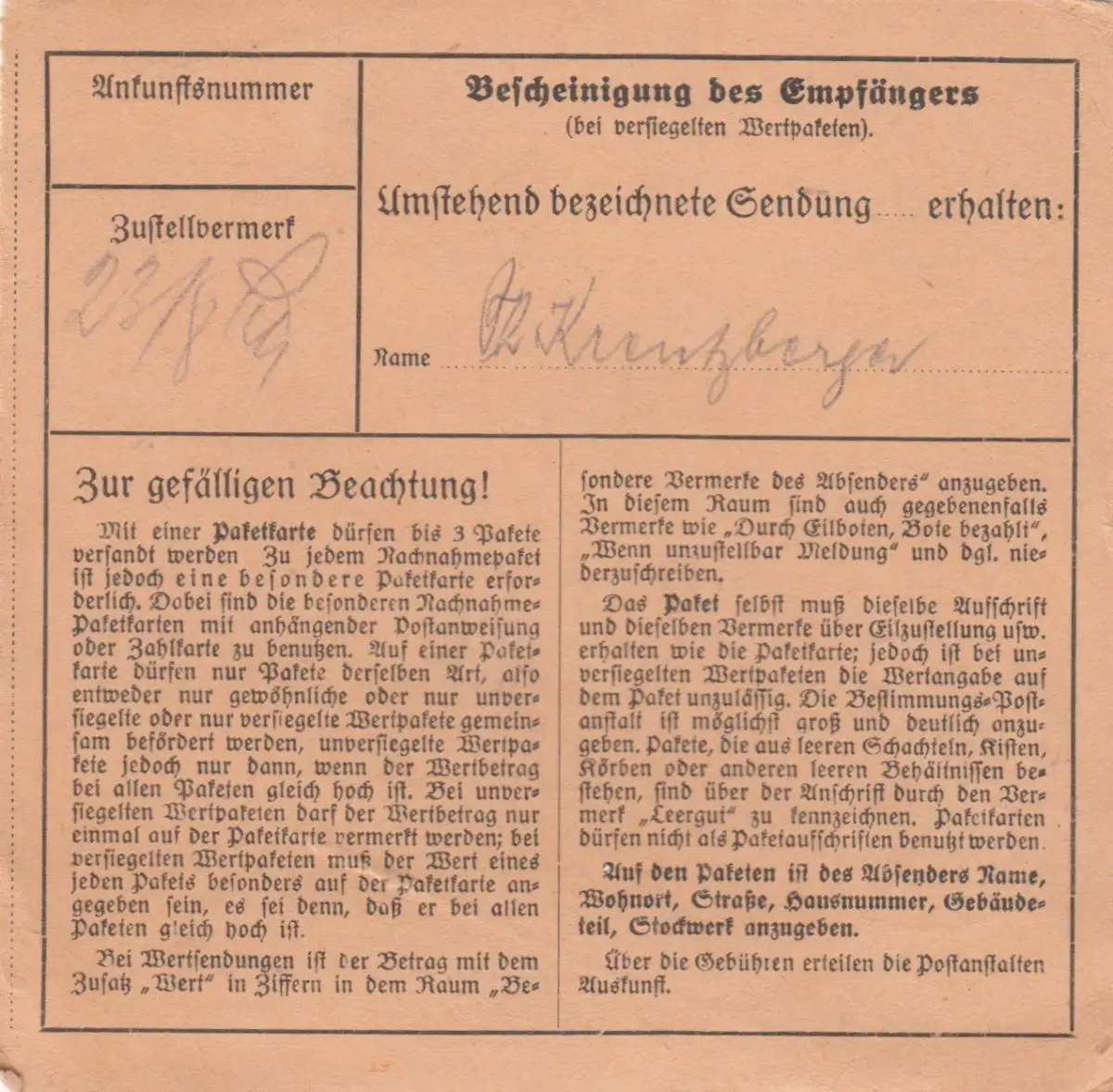 Paketkarte: Neuötting nach Bad-Aibling, Selbstbucher