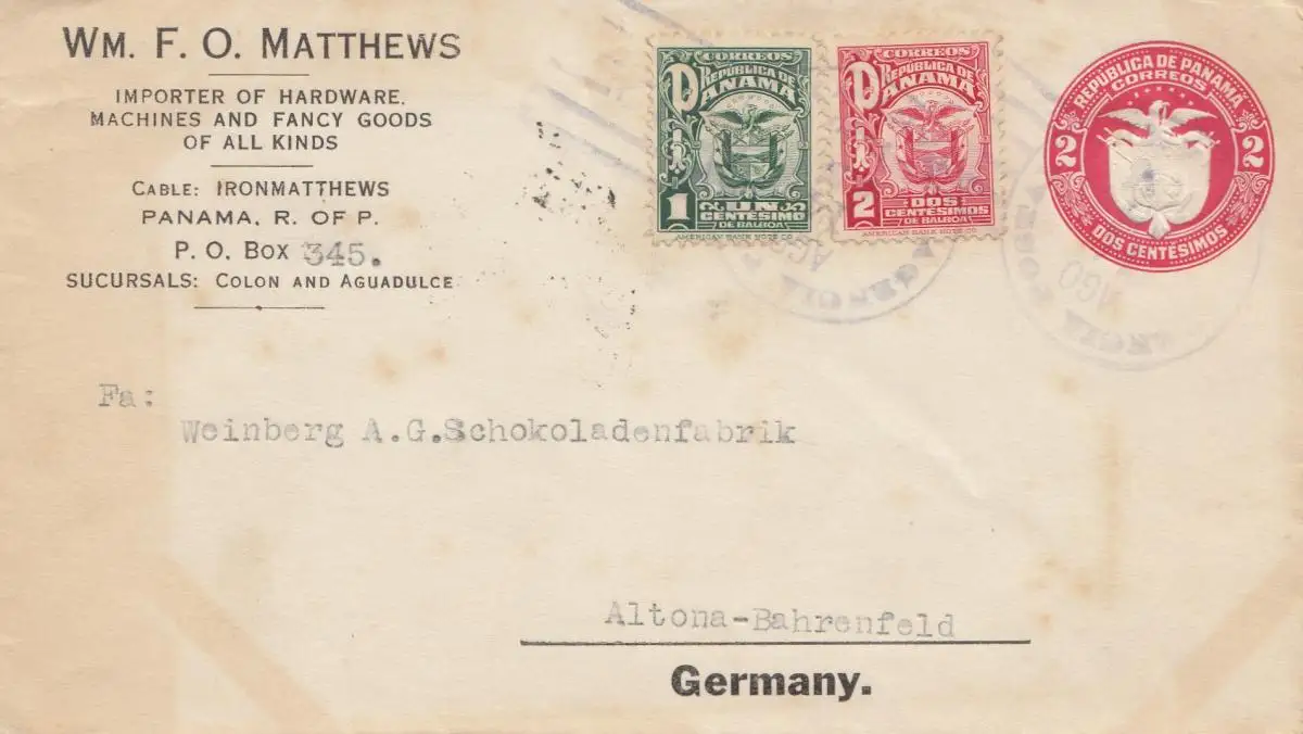 Panama 1925: Colon, Importer of Machines and Fancy goods to Altona-Bahrenfeld