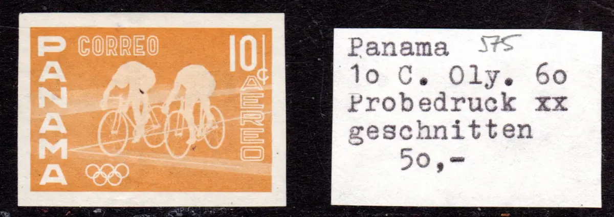 Panama 575, geschnittener Probedruck 10 C. Olympiade 1960 (Radrennfahrer).