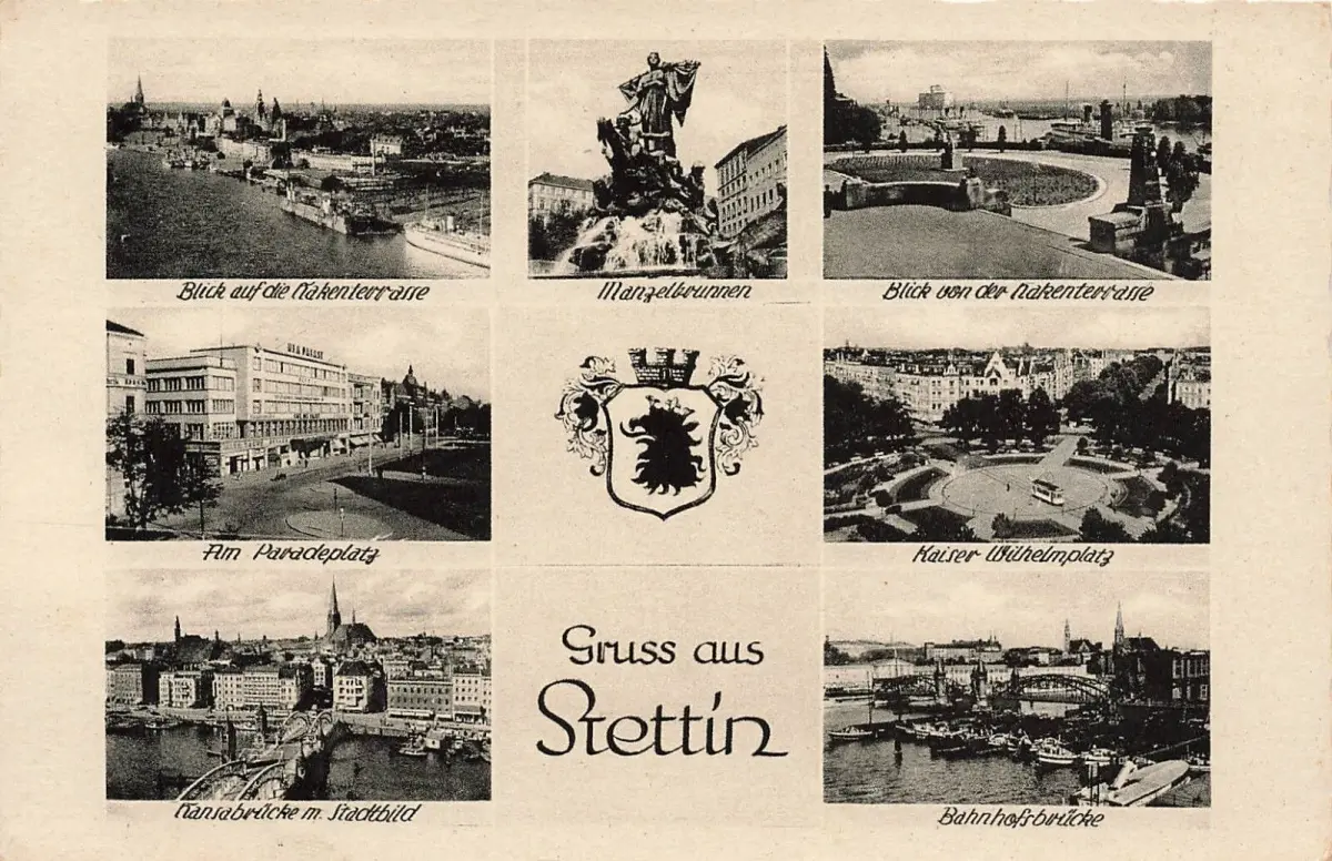 Panorama Bahnhofsbrücke und Paradeplatz Stettin Pommern Postkarte AK