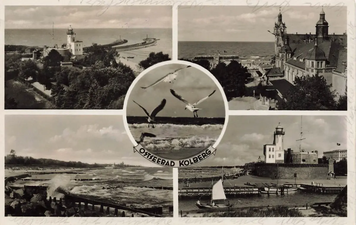 Panorama Lotsenturm u. Strandschloss Ostseebad Kolberg Pommern Postkarte AK 1937