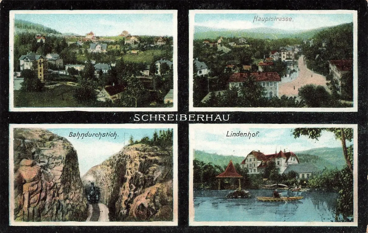 Panorama bahndurchstich und Lindenhof Schreiberhau Schlesien Postkarte AK