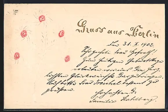 Papierkunst-AK Berlin, Blume mit roten Blüten
