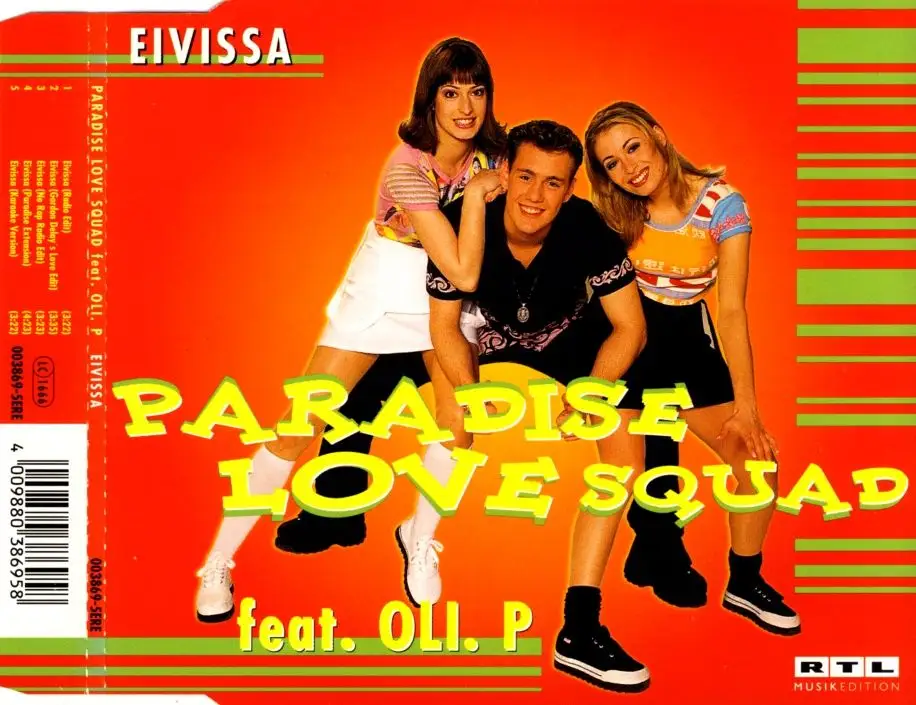 CD Single Paradise Love Squad feat. Oli P. - Eivissa, Zustand CD M- Hülle M-; Made in Germany 1998 Edel 003869-5 ERE, Tracks Radio Edit 3:22, Gordon Delay's Love Edit 3:35, No Rap Radio Edit 3:23, Paradise Extension 4:23, Karaoke Vers. 3:22