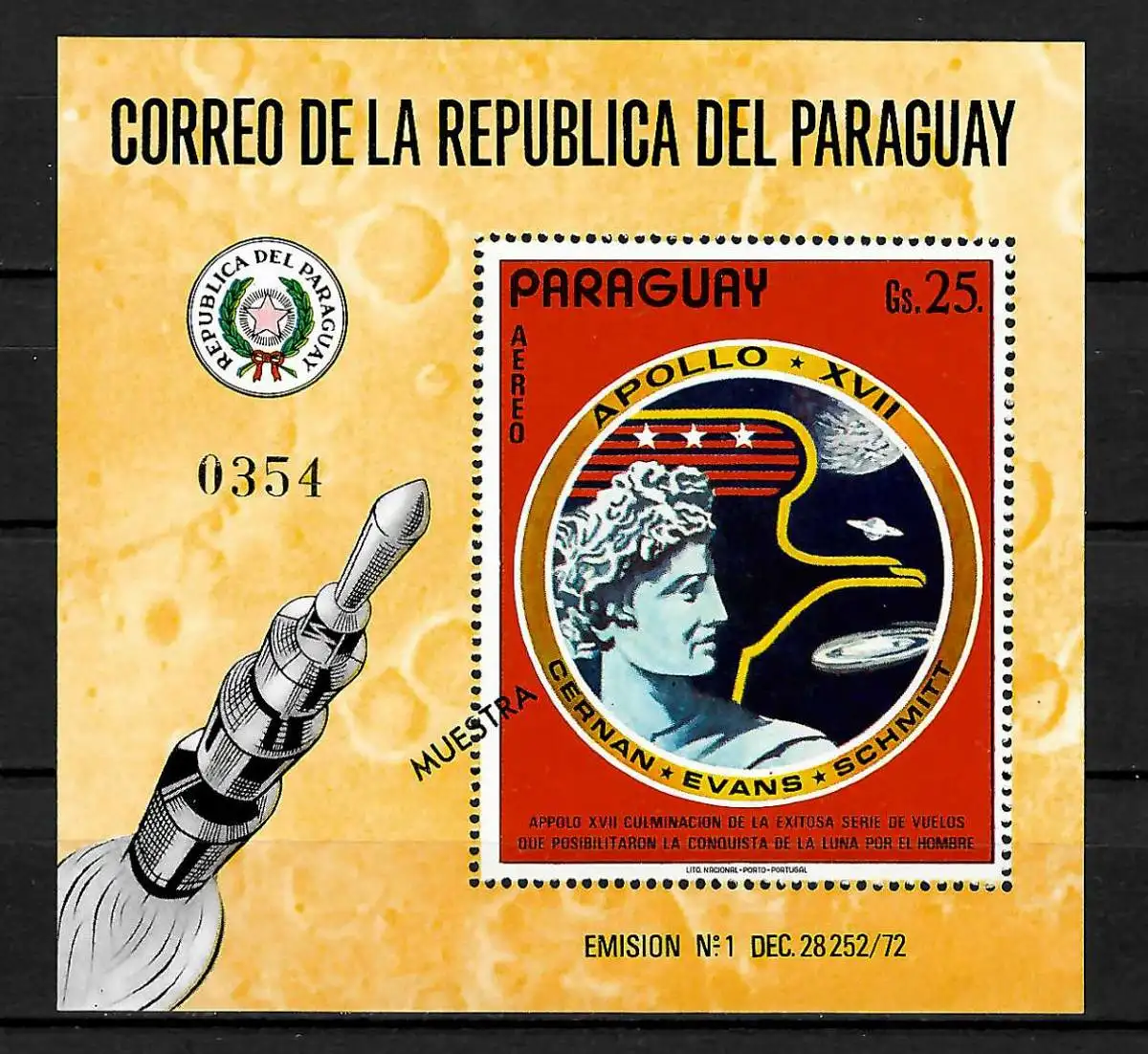 Paraguay: 50 Jahre Mondlandung, Apollo 17, Block #198, MUESTRA, postfrisch