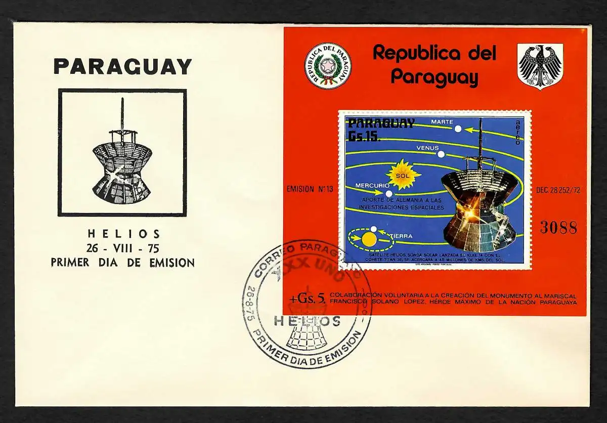 Paraguay Sondensonde Helios, Block #251, FDC 1975